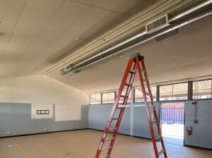 To reduce the humidity levels in classrooms, we provided rooftop units, ductwork, and ceiling air devices in a timely matter while minimizing disruption to classroom and administrative activities. In the end, we were able to utilize temporary classroom trailers to complete the work over a year and half, and the teaching staff was happy to have air conditioning with new ceilings and LED lighting.