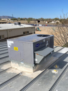 Pueblo Mechanical was selected as the partner for HVAC maintenance and repair services for four Chino Valley Unified School District campuses in Chino Valley, Arizona. With the challenge of upgrading equipment in buildings dating back to the early 1920s, our crews got to work, replacing 142 evaporative coolers with packaged rooftop A/C units with natural gas heating. The evaporative coolers of Del Rio Elementary School, Heritage Middle School, Territorial Early Childhood Center, and Chino Valley High School were not providing adequate cooling and exceeded their equipment life expectancy.